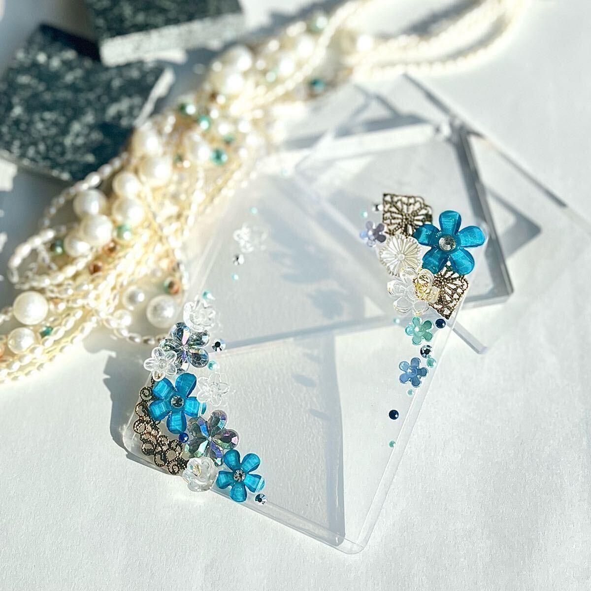 - トレカケースデコ B8 硬質ケースデコ フラワー ビジュー フラワー 青 ブルー パール ラインストーン ケースデコ ぱしゃこれ 推し活 ヲタ活