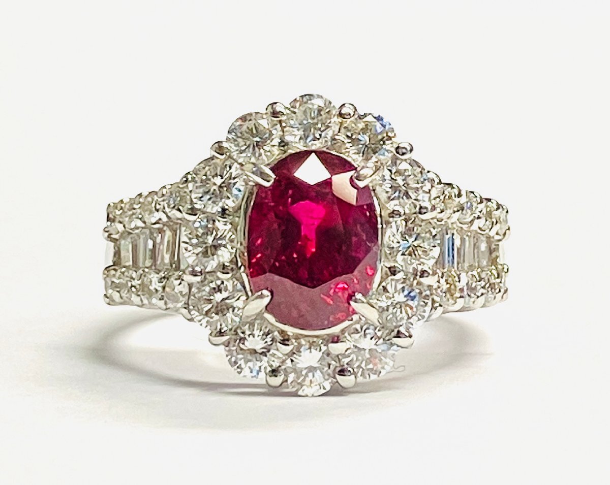 - qoj.Z1O06 PT900 プラチナ 天然ルビー ダイヤモンドリング 中石2.356/枠石1.53 ソーティング付き 11.5号
