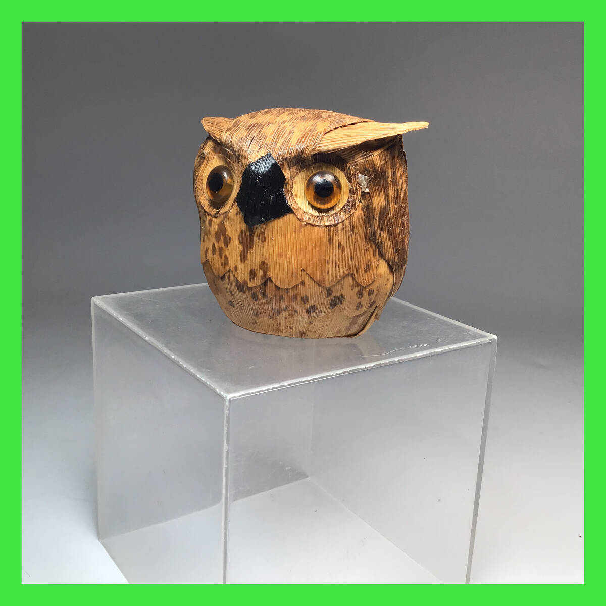 - AZ0109☆ フクロウの置物 竹皮工芸 竹川細工 民藝 縁起物 お土産 梟