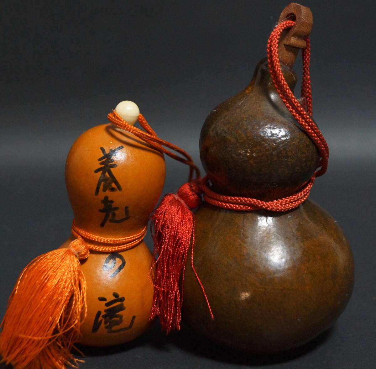 - 【芸】煎茶飾り瓢箪(2点) ひょうたん 置物 飾り物 酒器 水筒提げ物 装飾品★時代物★s70617