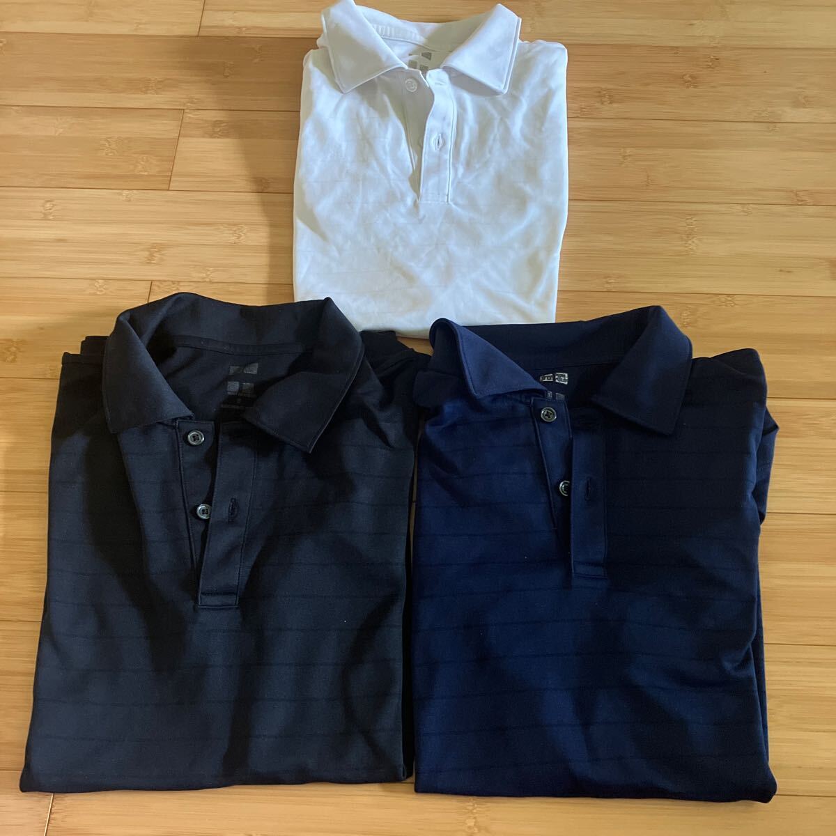 > ユニクロ UNIQLO Sサイズ ポロシャツ 半袖シャツ 半袖 春夏 ブラック ホワイト ミニボーダー ネイビー 紺 3枚セット BLACK White