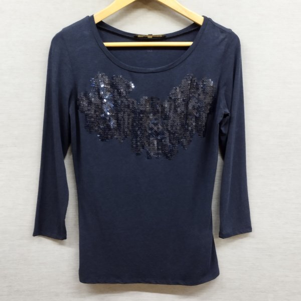 - F512 MAX MARA WEEKEND LINE マックスマーラ ウィークエンドライン 七分袖 Tシャツ スパンコール 装飾 薄手 ラウンドネック ネイビー系 S