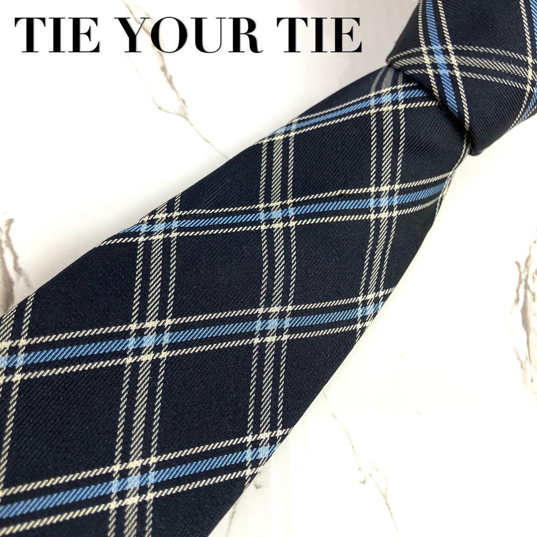 - TIE YOUR TIE タイユアタイ ネクタイ チェック柄 ジャガード 光沢感 ネイビー