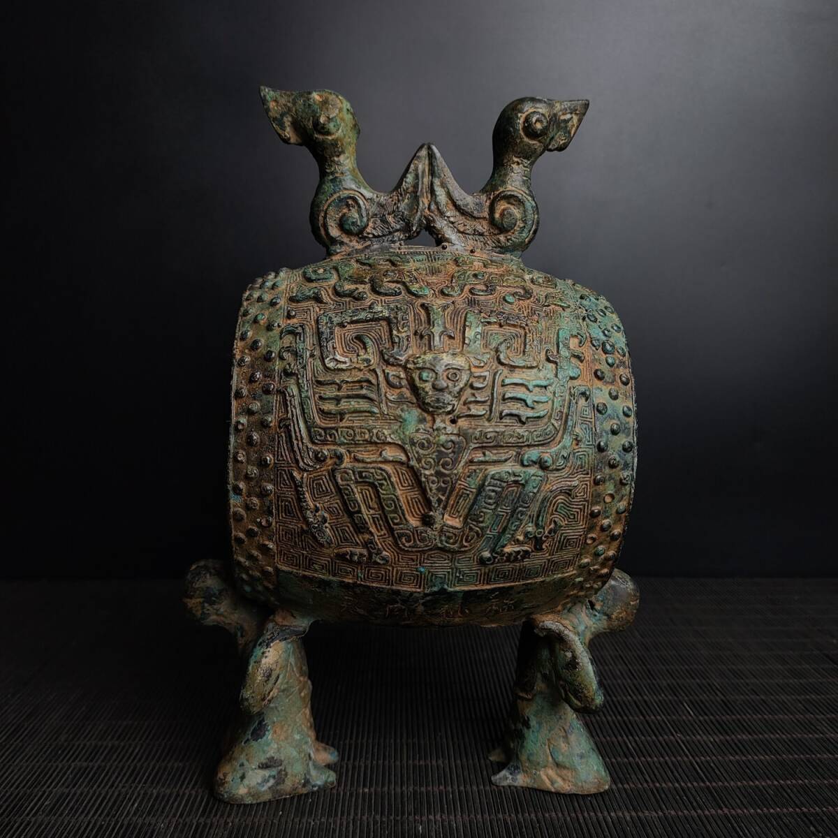 - 『館蔵珍品 戦 青銅製 立鳥跪人鼓 青銅器 置物 賞物』稀少珍蔵品 古賞物 貴重物品 収蔵品 中国古美術 時代物 古董品