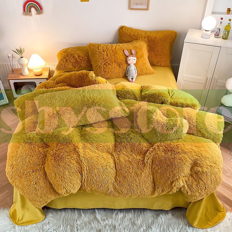 > 8色選択 厚くて暖かい冬用コーラルベルベットベッドシーツ、掛け布団カバー、寝具付き豪華な4点セット 200*230cm
