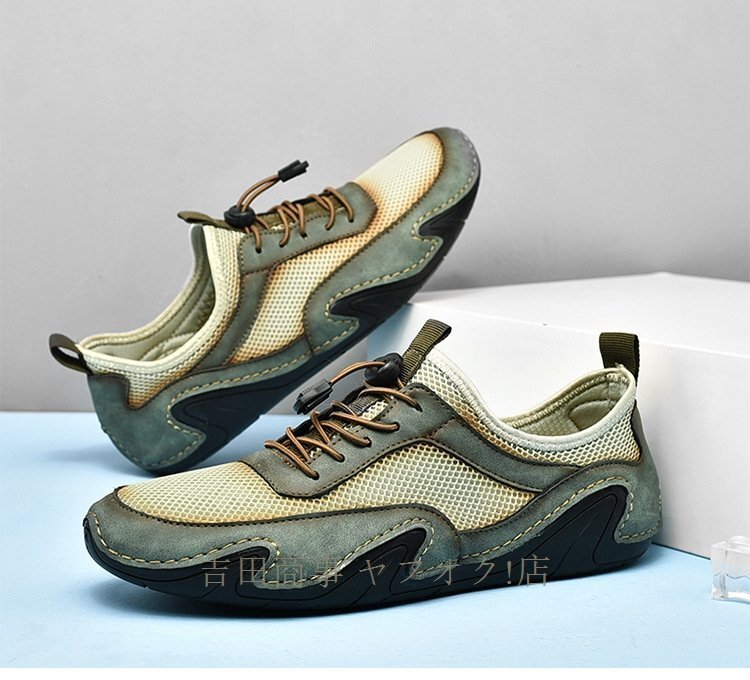 - ★新品メンズシューズ 牛革ドライビングシューズ登山靴運動靴本革レザーランニング ウォーキング 春夏 秋靴 通気性 緑 24~28.5cm