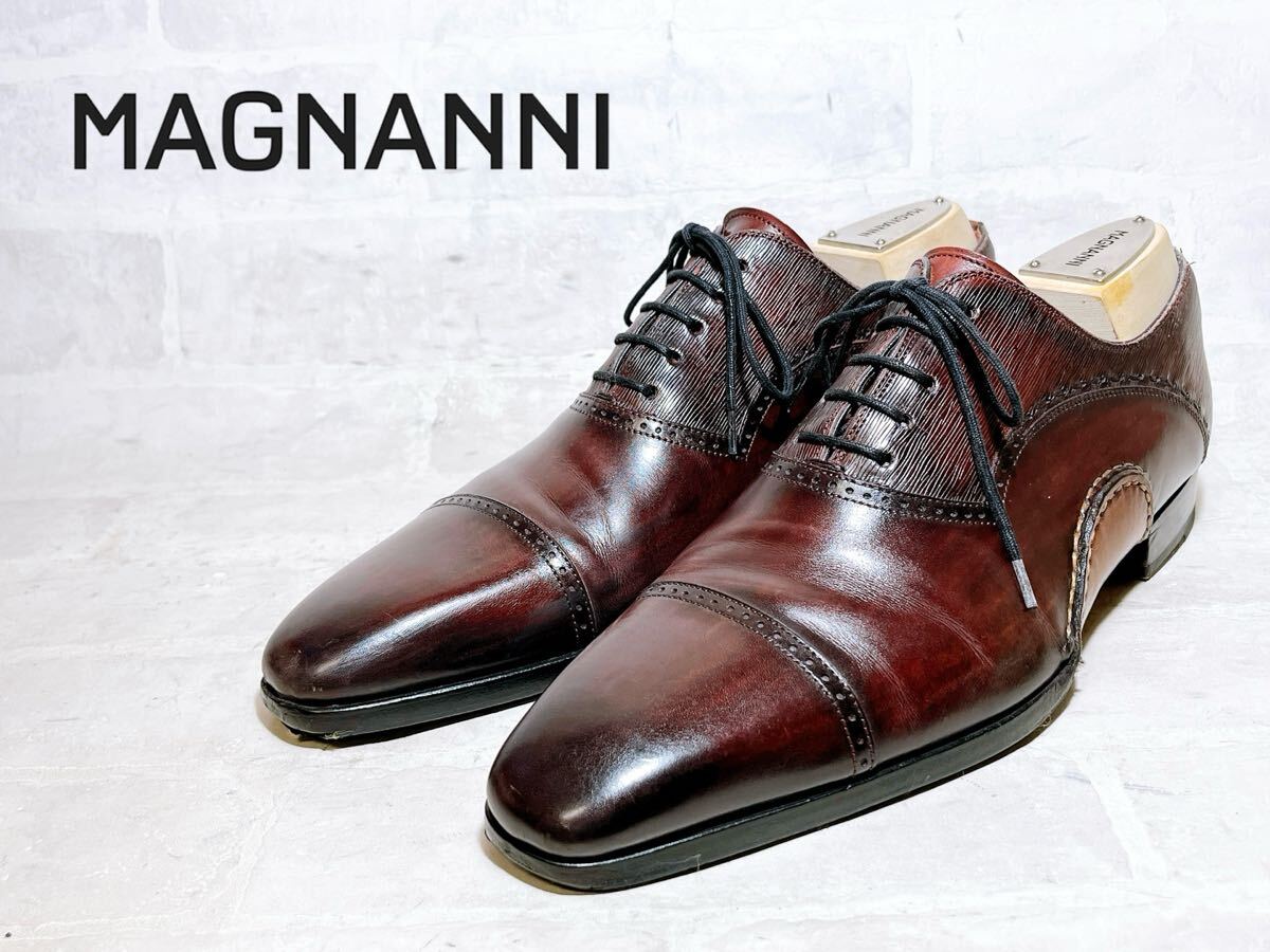 > 純正シューツリー付【美品】MAGMANNI マグナーニ 高級 オパンケ製法 ビジネスシューズ 本革 レザー 茶 40(約25cm)メンズ スペイン製