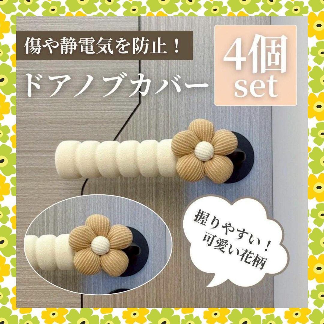 - ドアノブカバー 4本 ドアハンドル 衝突 静電気防止 グリップ ブラウン