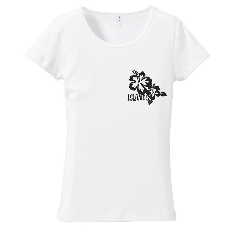 - (M)ホワイト【tf059】*モノクロHAWAIIロゴ*メール便Tシャツ半袖送料無料フラダンスレディース南国カジュアルハウラロゴハイビスカス