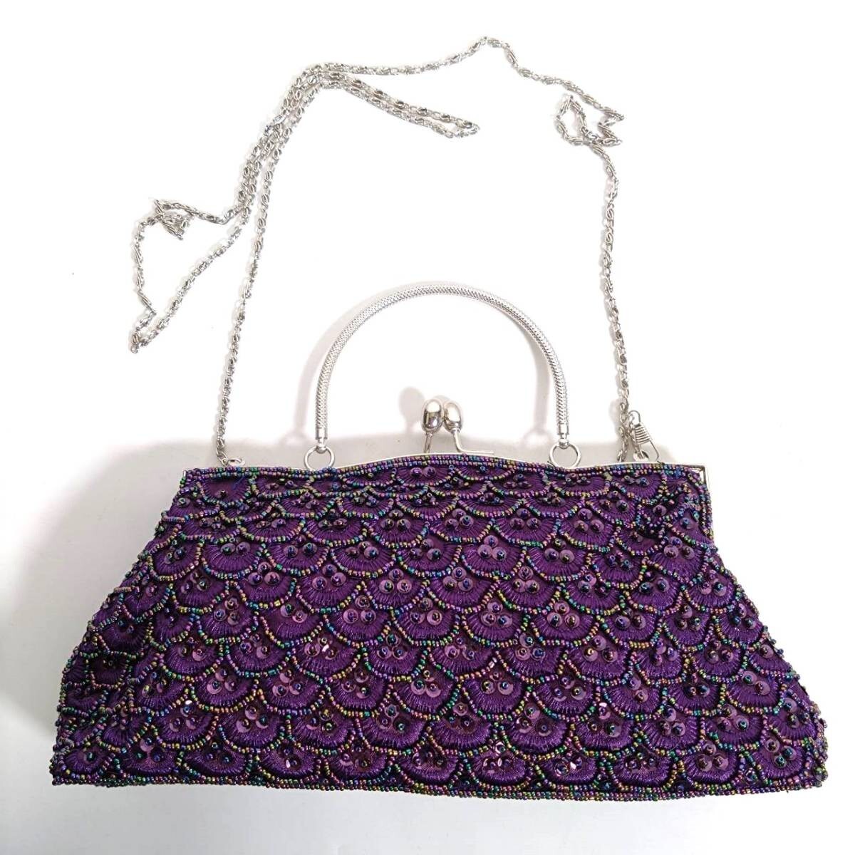 - K) ビーズ×スパンコールバッグ ハンドバッグ パーティバッグ イブニングバッグ パープル系 きれい お出かけ 和装 洋装 KJ2003