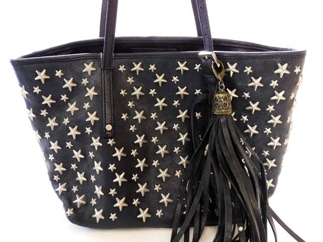 > ジミーチュウ ■ おまけチャーム付き レザー 黒 ブラック スタースタッズ トートバッグ サシャ JIMMY CHOO□7F