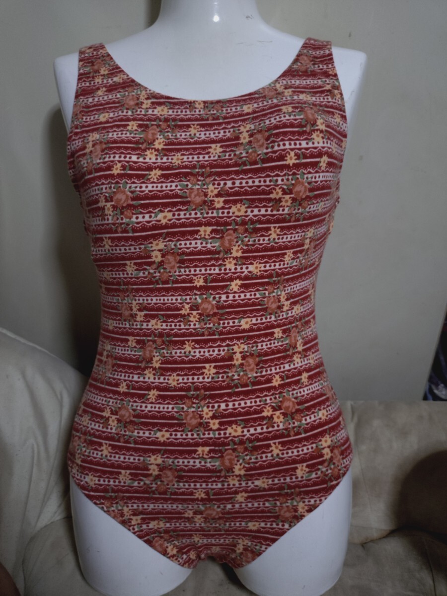 - M4271◆セレブなレッド系花柄ワンピース水着◆9М