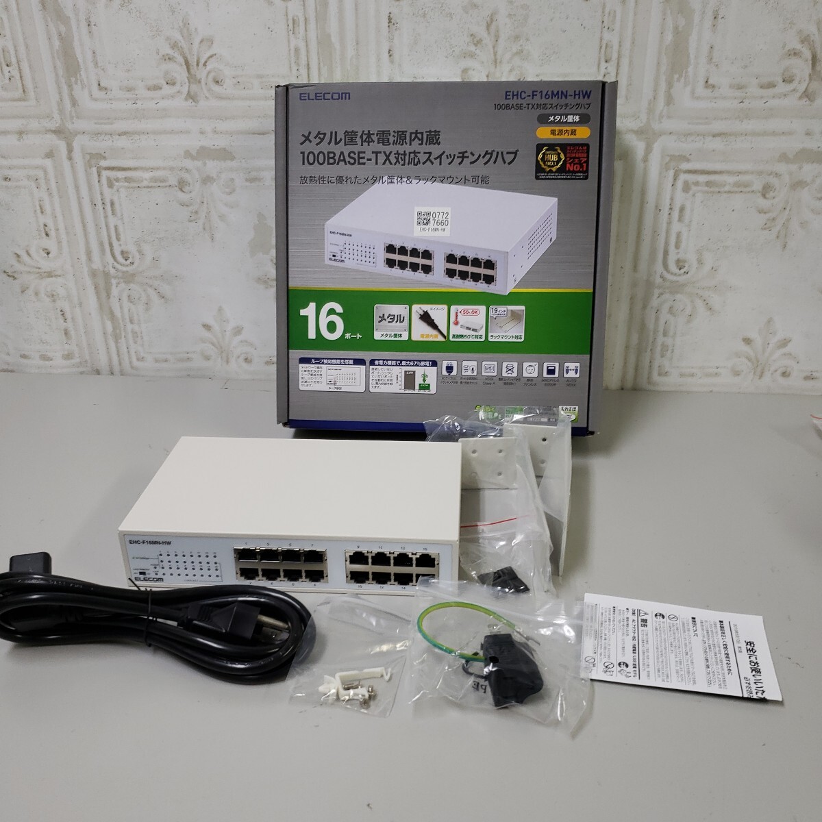 - 706y2103★エレコム スイッチングハブ 16ポート 10/100Mbps 金属筺体 電源内蔵 HC-F16MN-HW