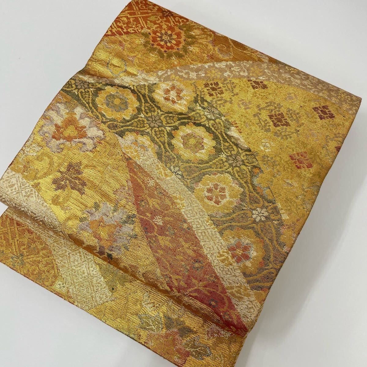 - 袋帯 金彩の美しい織出し 花唐草 正絹 W-1181