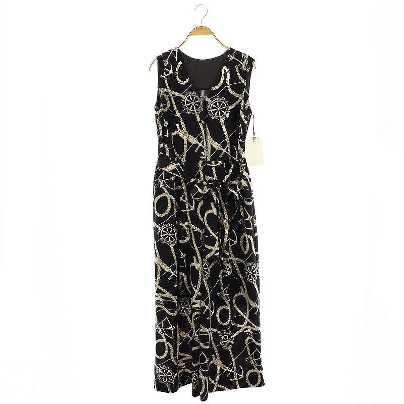 > 未使用品 グレースクラス GRACE Class 25AWプリントオールインワン サロペット パンツ 36 紺 白 ベージュ /CX ■OS レディース