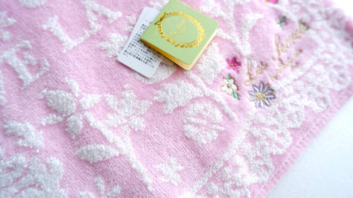 - 新品 タグ付き ラデュレ 刺繍 タオルハンカチ Les secrets LADUREE Paris