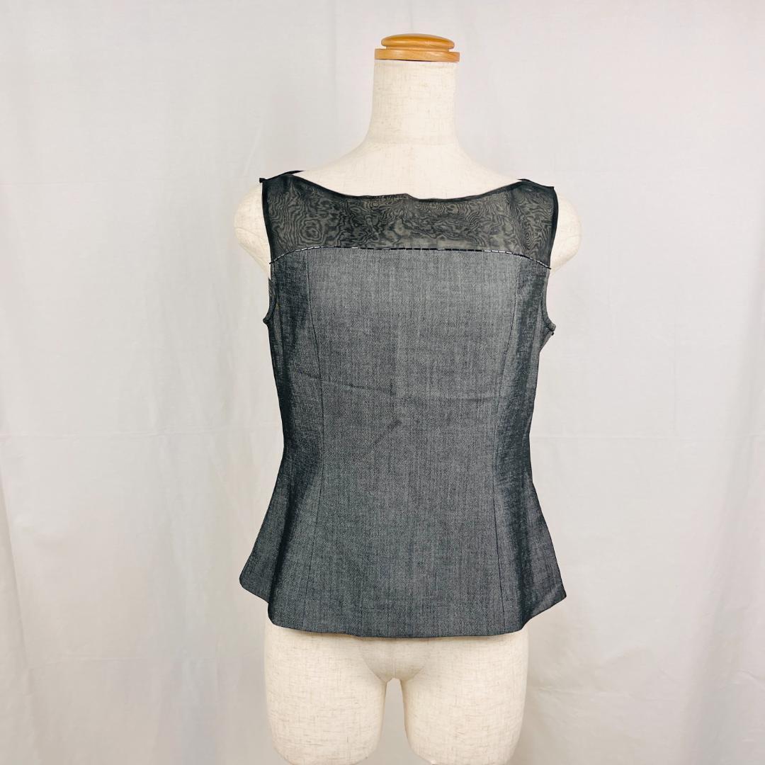 > 【2284】ミスレイニー 9AR グレー ノースリーブシアートップス ビジュー シースルー (株)シンク ボートネック 上品 レディ