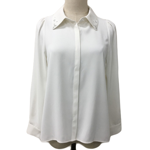 > ミッシュマッシュ MISCH MASCH シャツ ブラウス スタンダード ビジュー 無地 長袖 F 白 ホワイト レディース