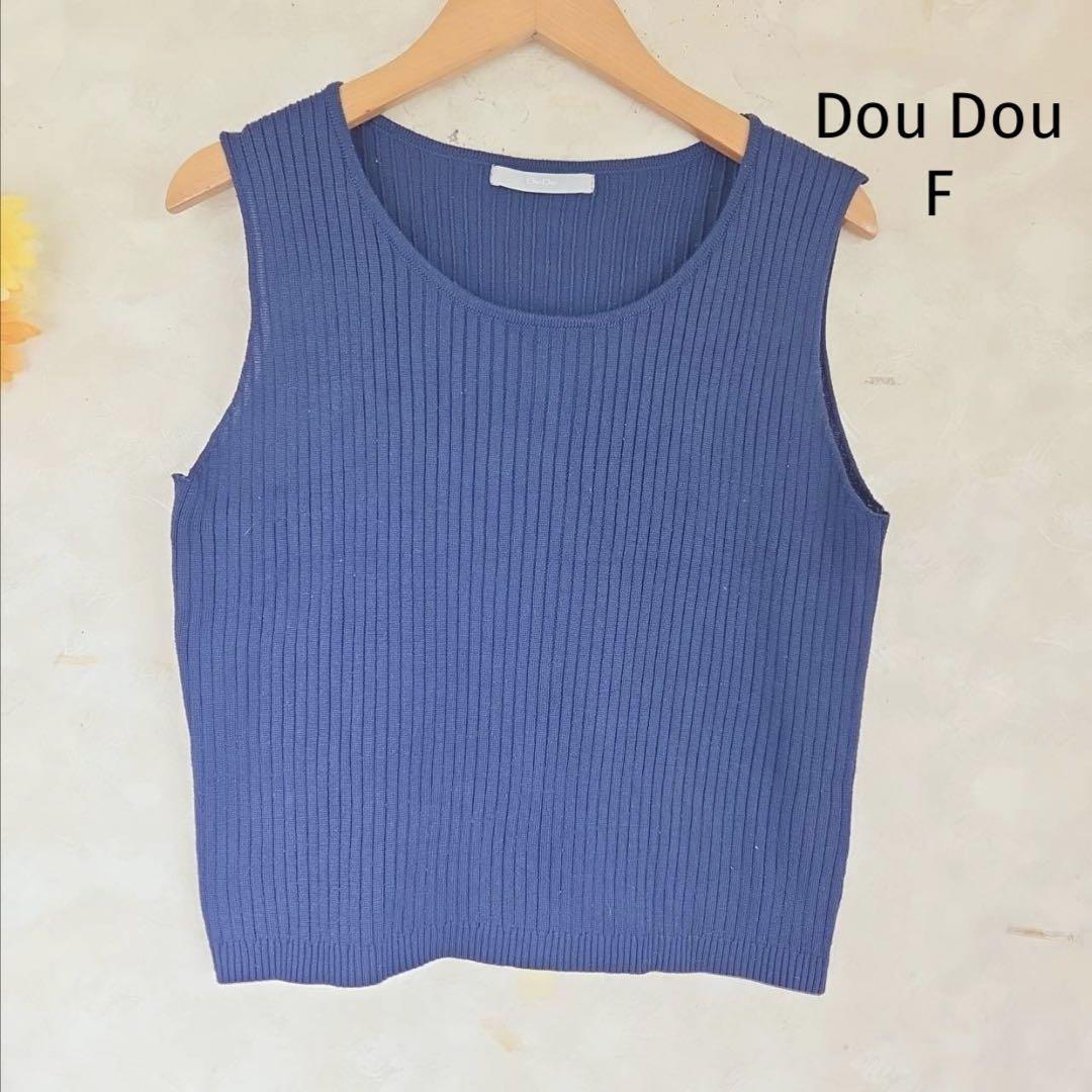 - ドゥドゥ Dou Dou サマーニット【F】ノースリーブ リブ 紺 ネイビー