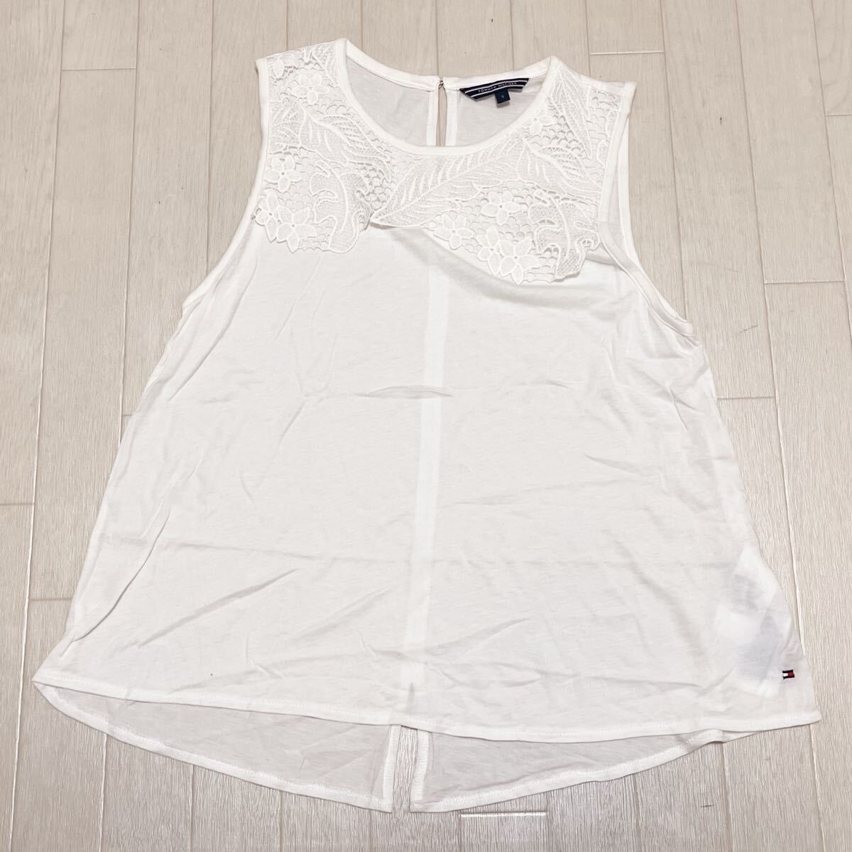 > 和764★ TOMMY HILFIGER トミーヒルフィガー ノースリーブ カットソー シアー レース カジュアル S ホワイト レディース