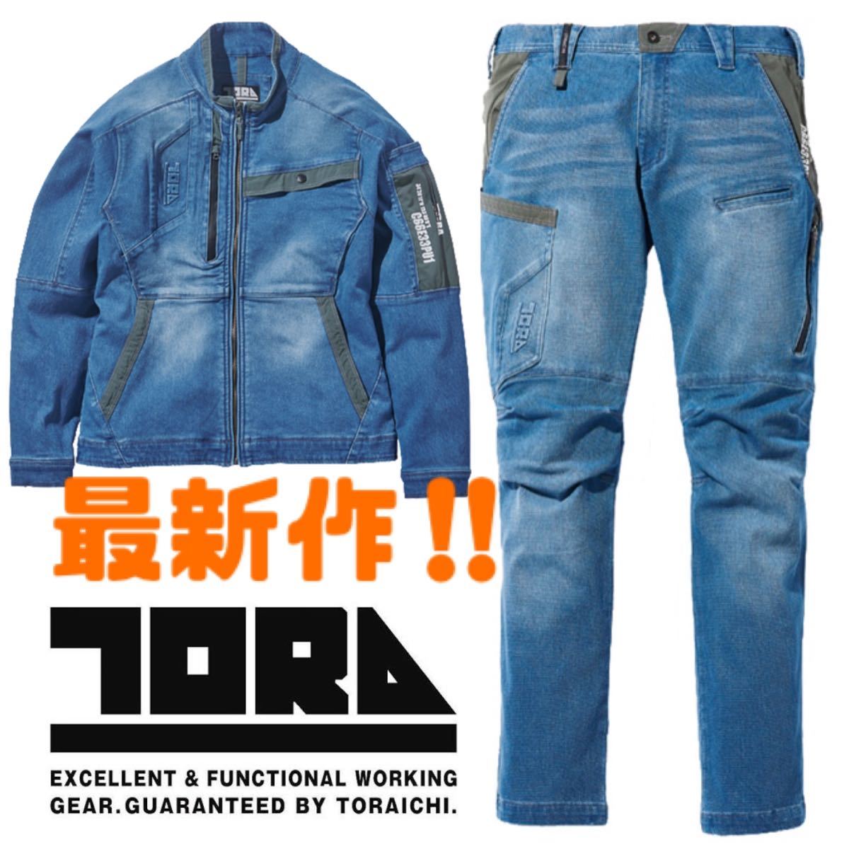 - 送料無料&税込価格!寅壱 作業着 メンズ ストレッチ デニム 上下 セット 新品 アイスブルー 選べるサイズ