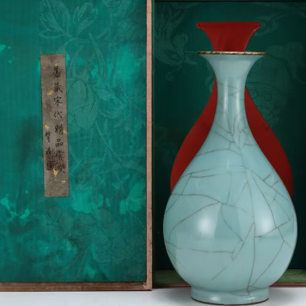 - 磁器 花瓶 秘藏 宋代 天青釉 官窯 汝磁 金 玉壺春瓶 酒器 茶器 唐磁 染付 陶磁器 收蔵品 古美味 時代物 古美術 古置物 珍品 中國文玩6.22