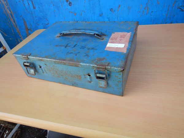 - 工具箱 平式 青040901 錆びあり 鉄製 頑丈 昭和レトロ 30.7X23H9CM 自動車整備士が使用