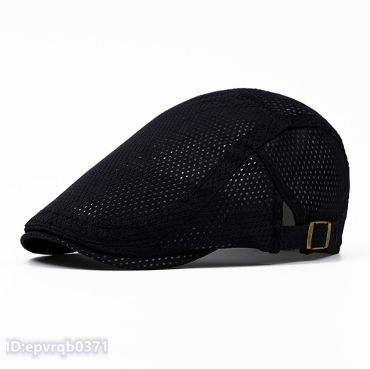 - ハンチング 夏新品 キャスケット 通気性抜群 無地 シンプル メンズキャップ 紳士 帽子 日よけ フリーサイズ 2色選ぶ/黒