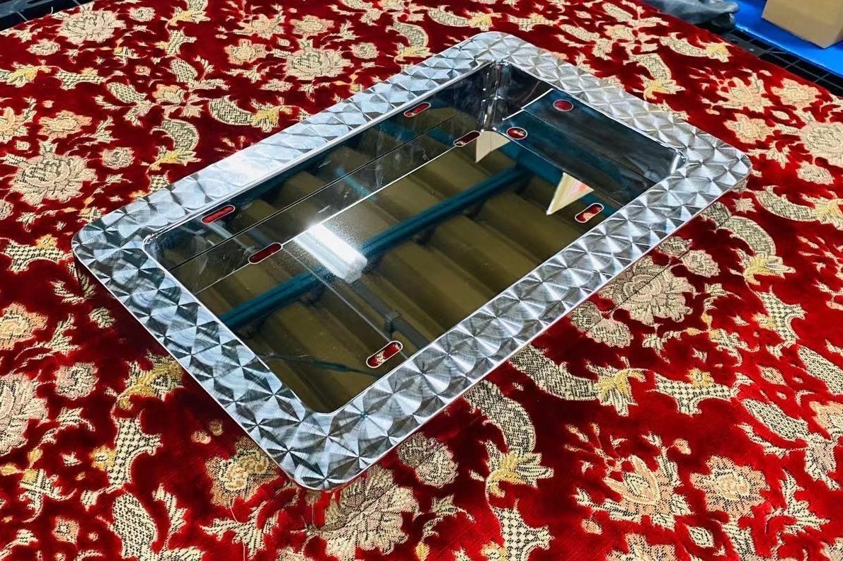 - 〆新品⇒大型用 角Rナンバー枠 奥行6cm ウロコ ステンレス鏡面 字光式対応 穴無しナンバーフレーム デコトラ:角R-U6