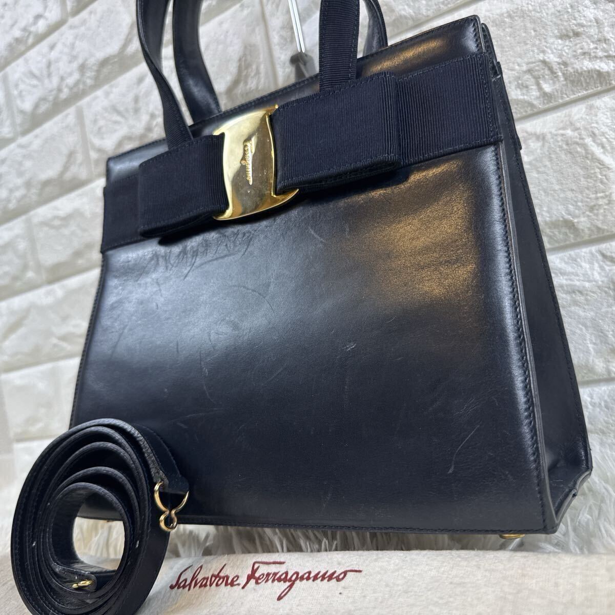 - Salvatore Ferragamo フェラガモ ヴァラ リボン ハンドバッグ ショルダーバッグ 2WAY フォーマル ネイビー系