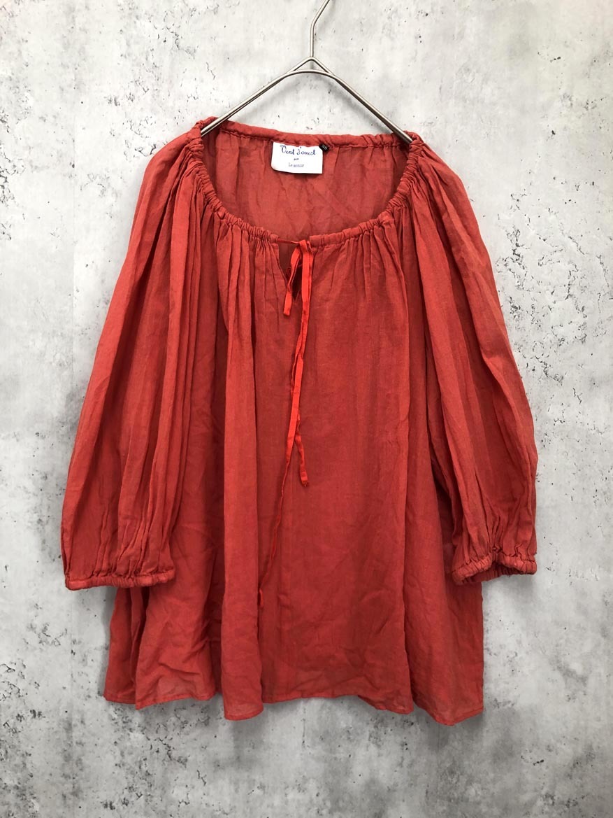 - ゆうパケットOK Le Minor oent a’ouest ルミノア コットンガーゼ 5分袖 ブラウス シャツ size38/赤 ■◆ ☆ ffc0 レディース