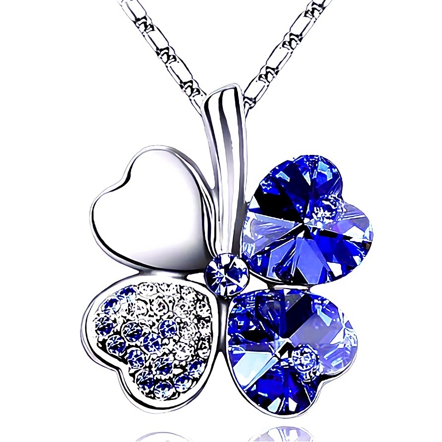 > 新品★送料無料★幸運の四葉 蒼玉サファイアダイヤモンドプラチナ仕上925シルバーネックレス 誕生日プレゼント旅行夏盆ギフト国内発送