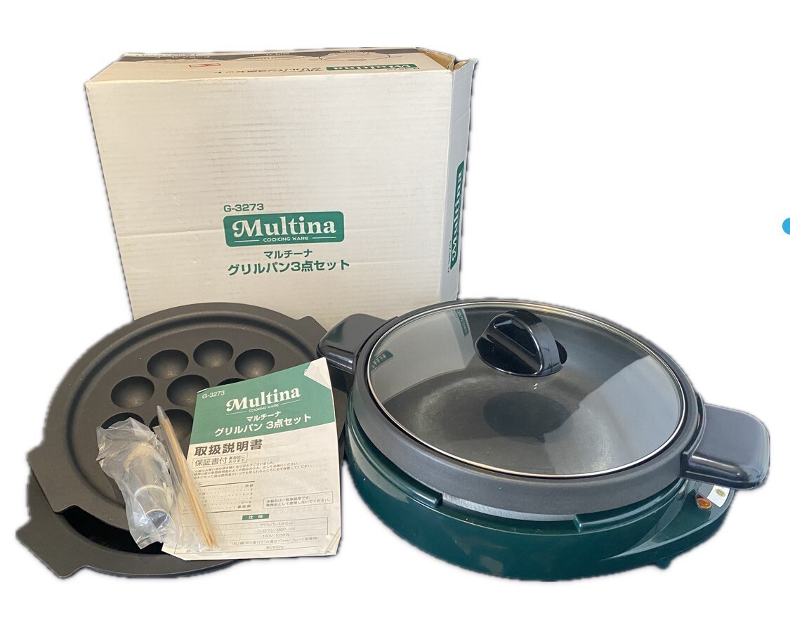 > 動作良好品 マルチーナ multina グリルパン mgp-105 3点 たこ焼き ホットプレート 鍋 電気グリル鍋