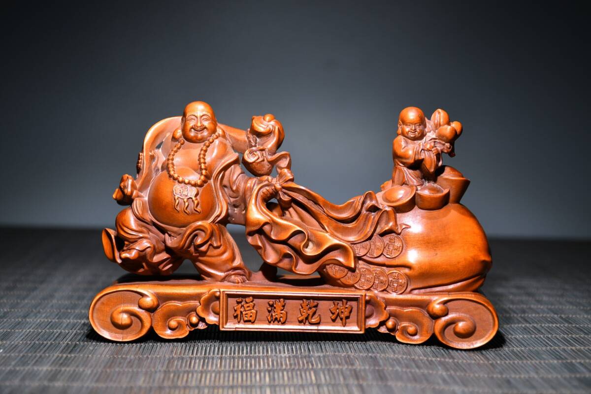 - 蔵友旧蔵出 黄楊木製 細密彫 福滿乾坤 錢袋仏 供養品 置物擺件 古賞物 中国古玩 中国古美術品