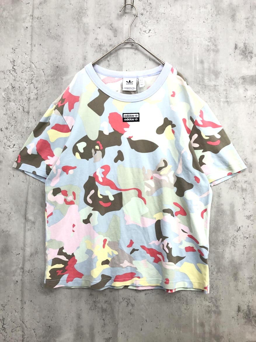 > ゆうパケットOK adidas アディダス R.Y.V, 総柄 プリント Tシャツ sizeM/ブルー系 ■◆ ☆ feb5 メンズ