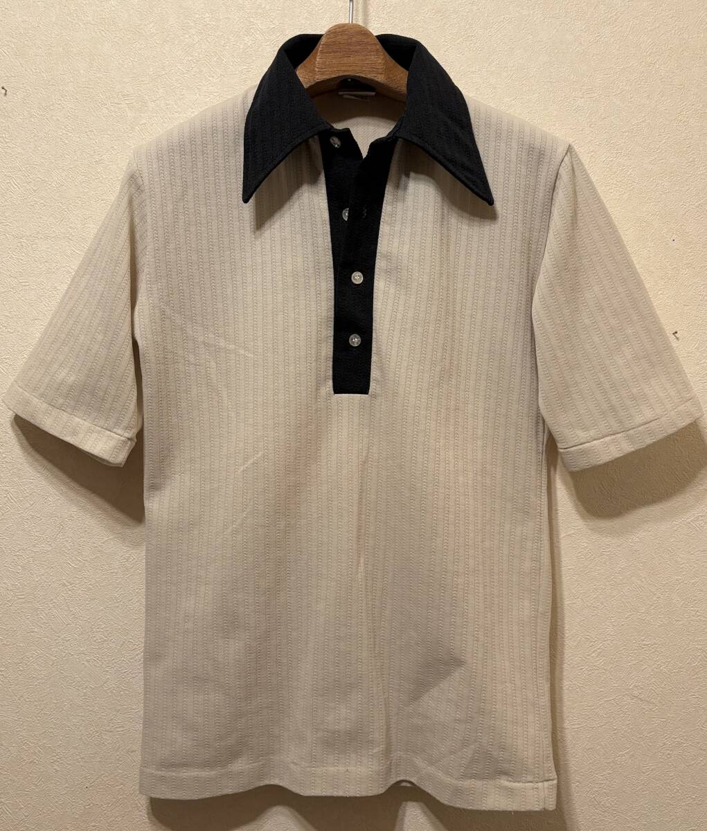 - 美品USA製70sビンテージPINTAILポロ半袖シャツSクリーム生成り白ニット黒ツートン2tone米製US製70年代1970s (hilton king louieボーリング