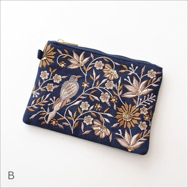 - ティッシュポーチ 刺繍 おしゃれ かわいい 花鳥柄 小物入れ 花鳥ビーズ刺繍ティッシュポーチ 【Bカラー】 送料無料(一部地域除く) kan2700b