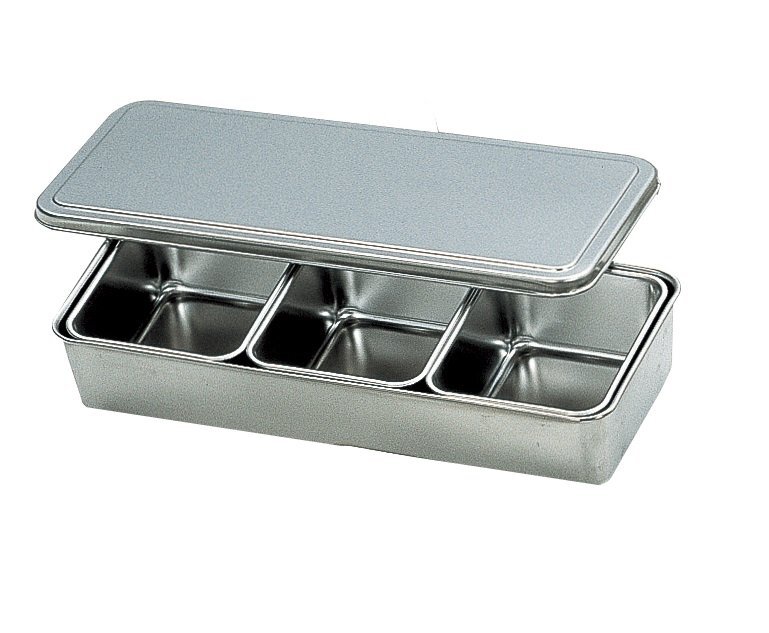 - ☆ヤクミ入調味料入バット3個ヶ入普及型アイデア次第で使い方いろいろ料理や珍味等を小分けにそのまま食卓へステンレスプレス加工日本製