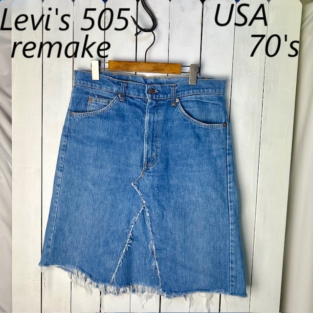 > USA古着 70s USA製 Levis 505 リメイクデニムスカート 34 青 L~XL オールド ヴィンテージ アメリカ リーバイス 膝丈 42TALON 66後期 ●401