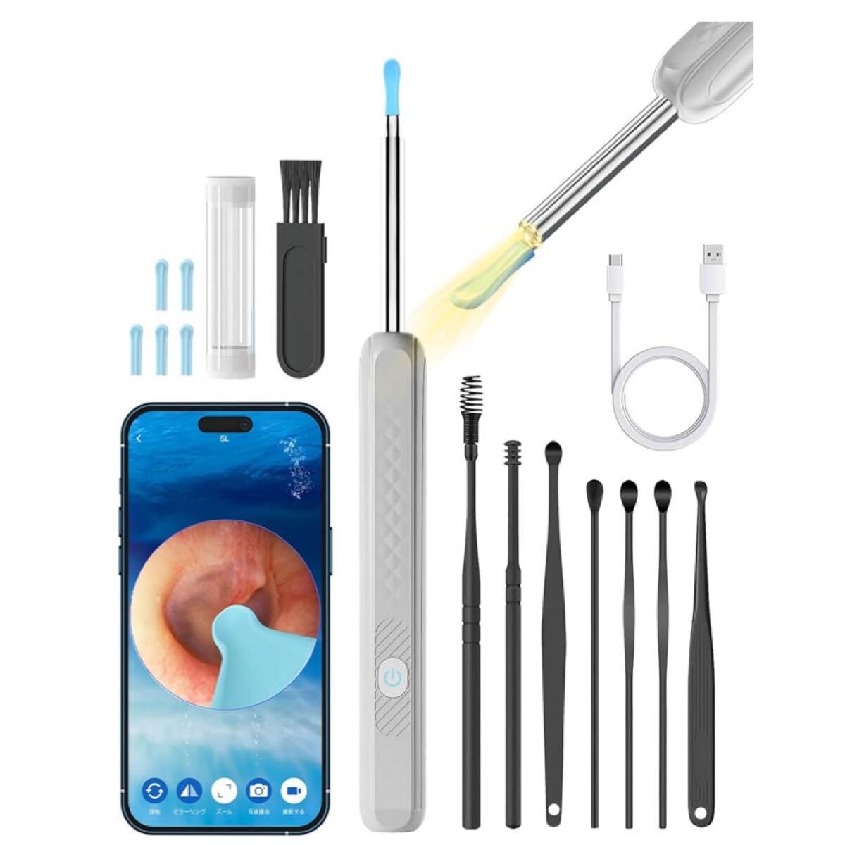 - 充電式 耳かき カメラ付き ワイヤレス イヤースコープ 極細レンズ WIFI接続 耳掃除