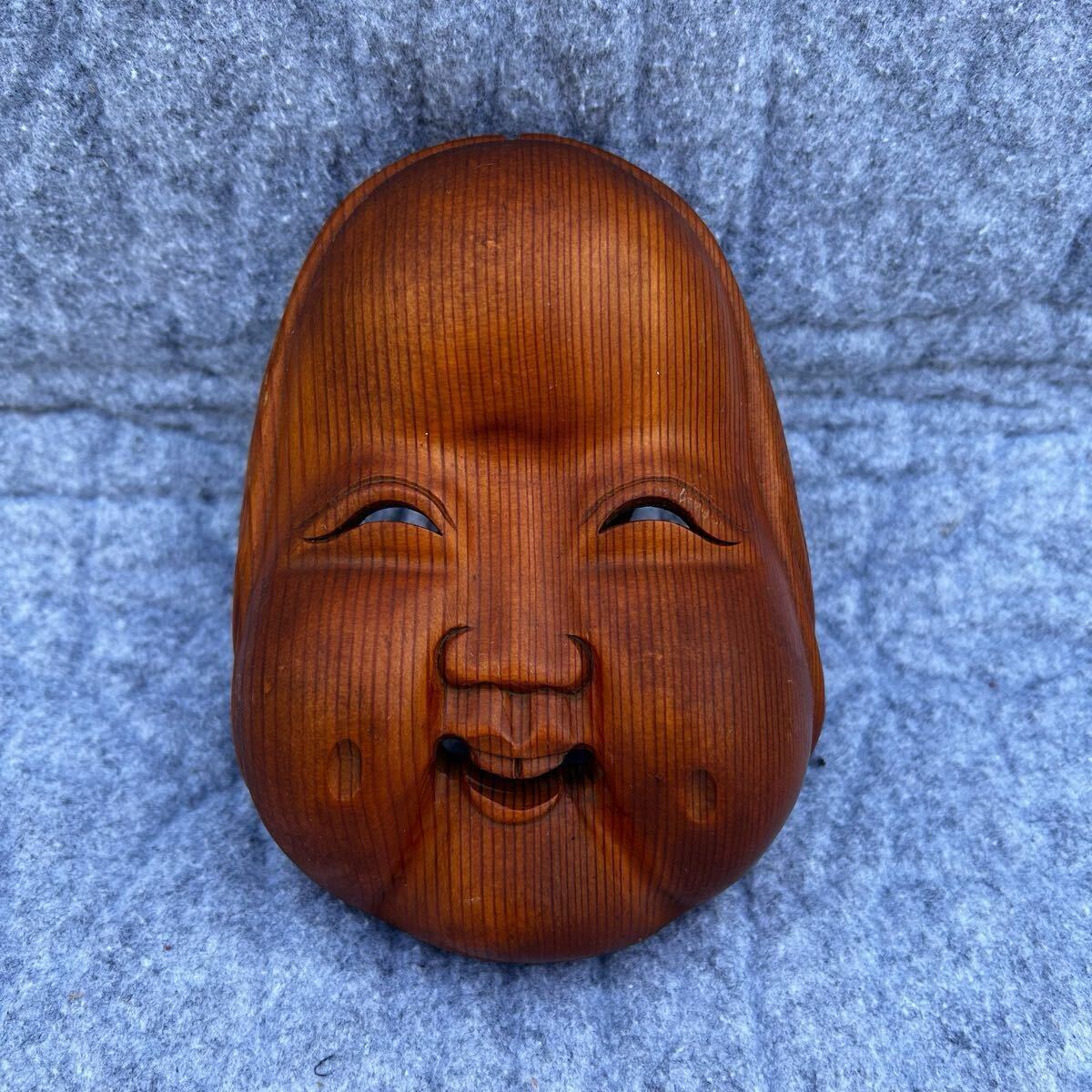 > お多福 おかめ 福娘 木彫り お面 小面 木彫 能面 木製 壁掛け インテリア 年代物 当時物 ビンテージ アンティーク 美術品 工芸品 古美術