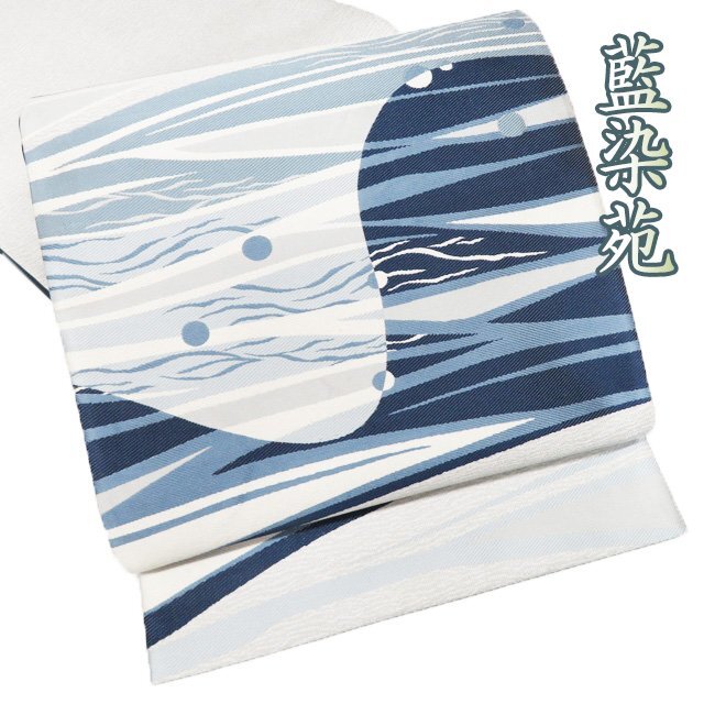 > 袋帯 未使用 正絹 カジュアル 仕立て上がり お太鼓柄 藍染苑 本藍染糸織 抽象模様 白藍色 青系色 多色 きもの北條 A1220-11