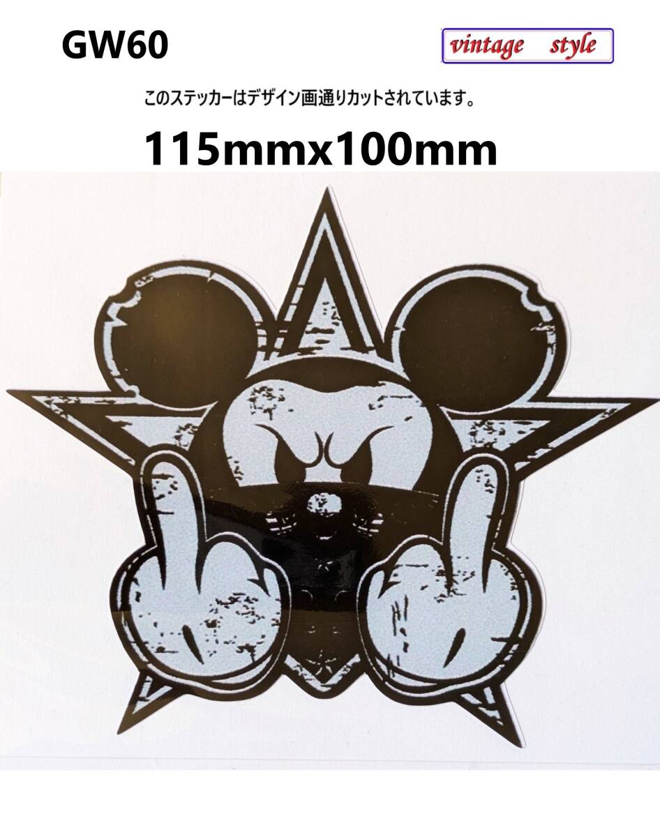 - GW60-2 特価 ヴィンテージスタイル グレー マウス ネズミ ダブルデュース 侮辱サイン 挑発 ダメージ加工 レトロ ガレージ デカール
