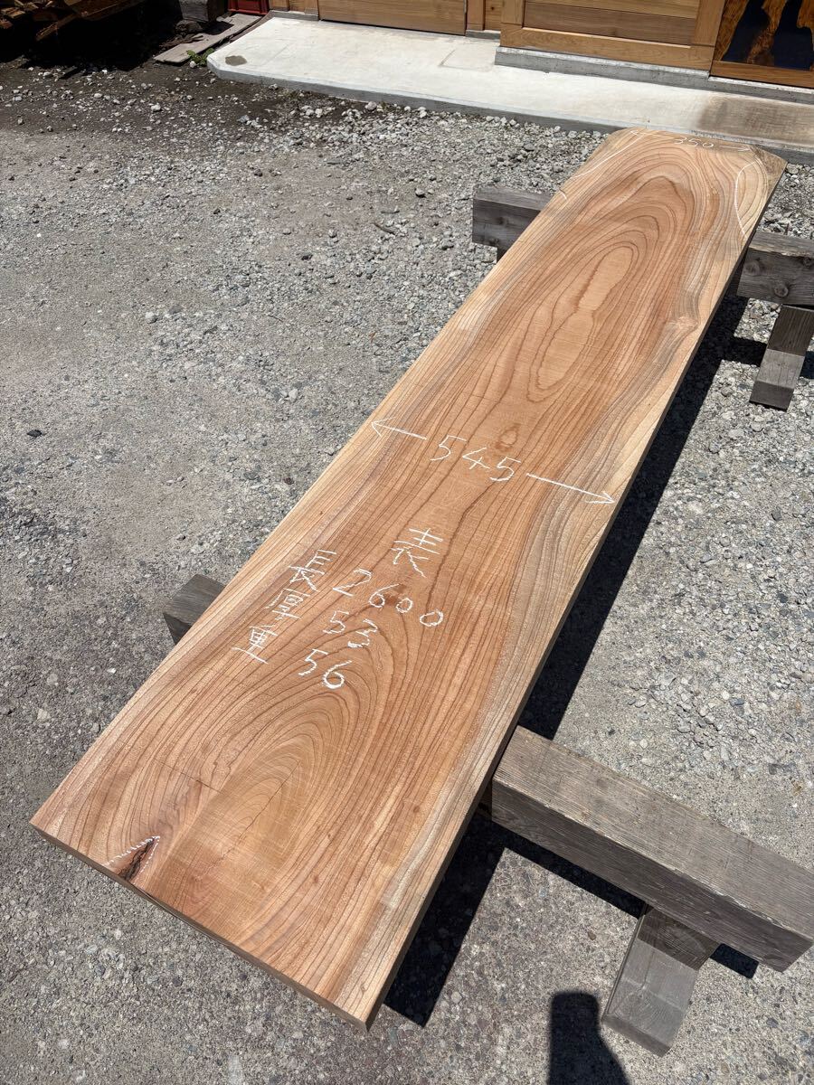 - 欅 けやき 一枚板 長さ2.6m カウンター 神棚 棚 テレビ台 ボード 天板 テーブル 上がり段 ラック シェルフ 看板 レジンDIY