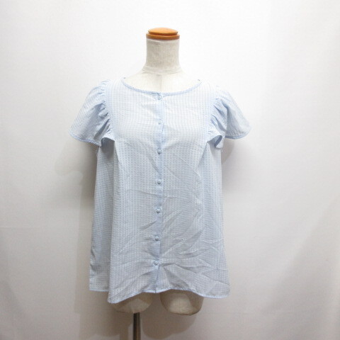 > アースミュージック&エコロジー EARTH MUSIC & ECOLOGY 美品 チェック柄 ノースリーブ シアー ブラウス M ブルー レディース