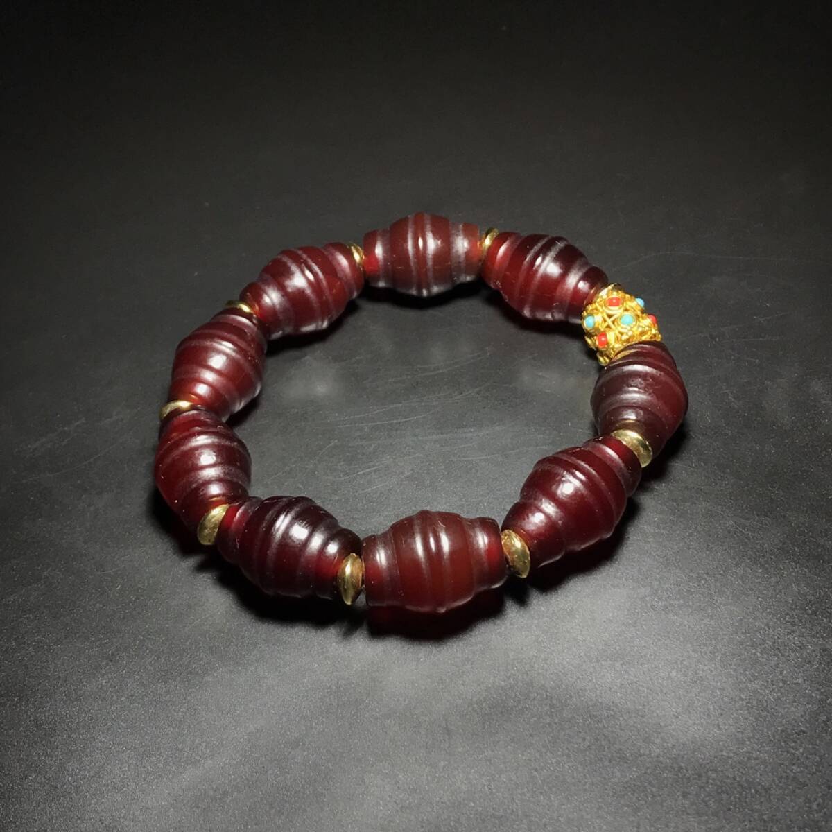 - 西蔵天珠 古紅瑪瑙彫 手鏈 腕輪 天珠 念珠 奉納 腕輪 盒有 極細工 古賞物 古美味 東洋彫刻 時代物 骨董 中国古美術