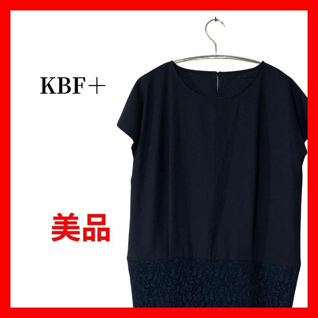 - 紺色 半袖ワンピース レース 切り替え フリーサイズ B1851