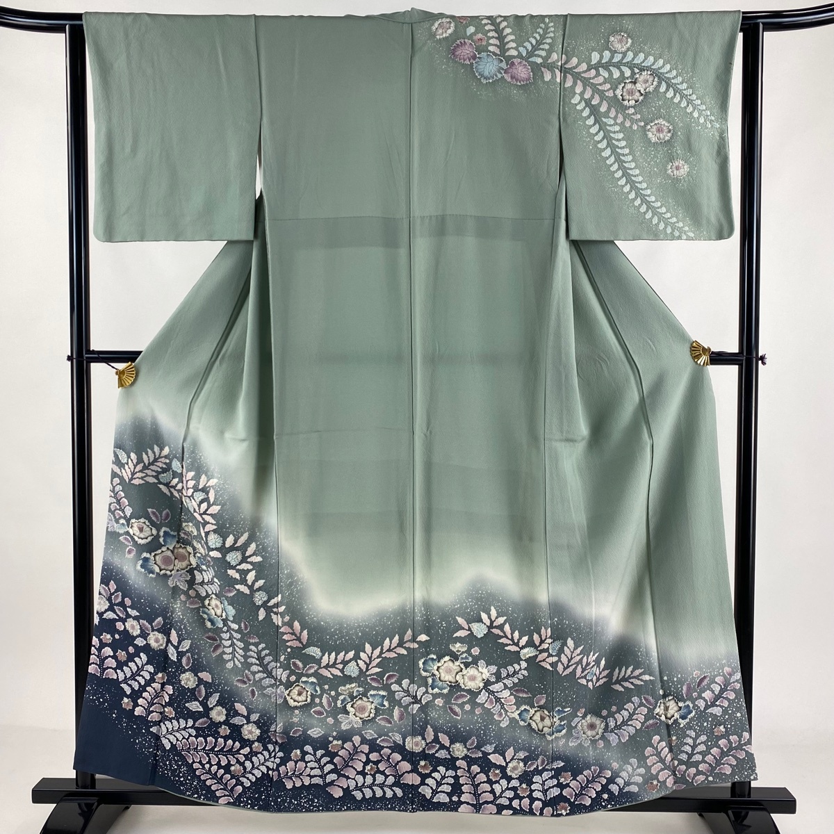 - 訪問着 身丈159cm 裄丈63cm S 袷 辻が花柄 ぼかし 灰緑 正絹 名品 【中古】