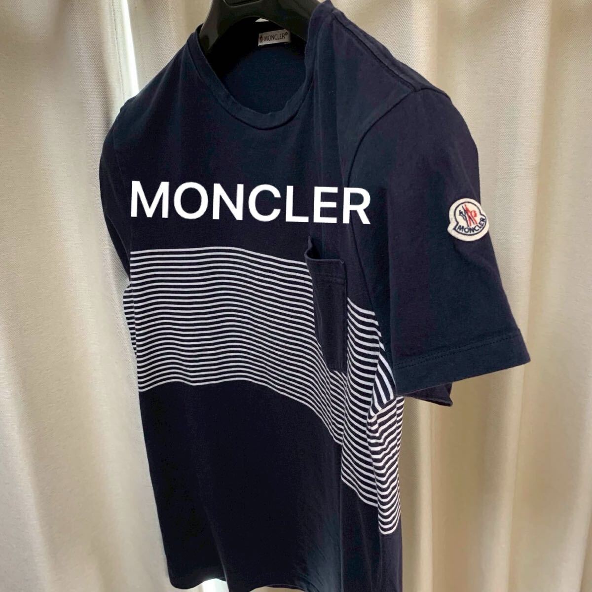 - 本物 正規品 MONCLER モンクレール ロゴワッペン MAGLIA T-SHIRT マグリア ボーダーストライプ 半袖 Tシャツ ネイビー M コットン100 綿