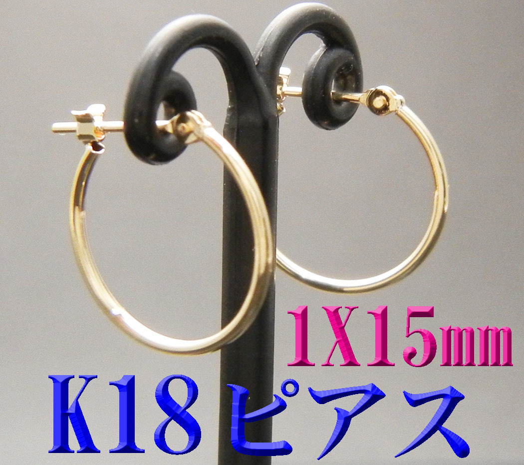 - 特別セール!K18 18金 1x15mm フープピアス 新品 日本製 スナップピアス